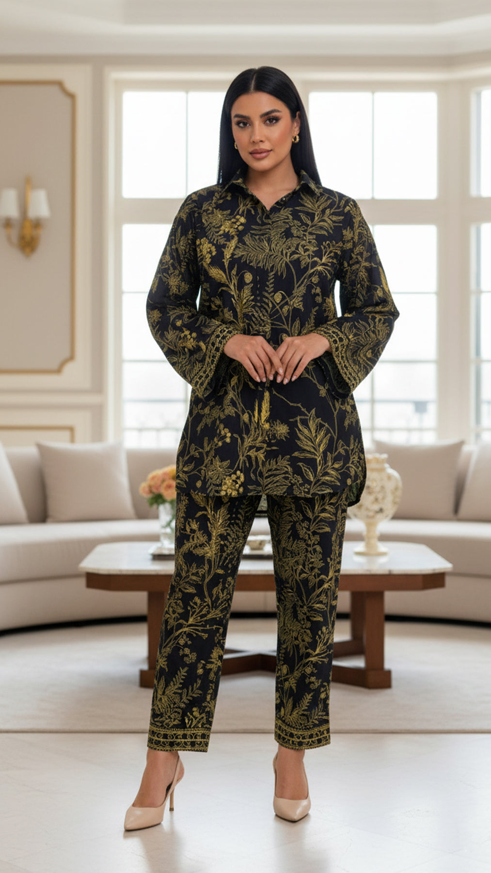 Redefine everyday elegance with this Co-ord Set—crafted in breathable, silky-smooth cambric with a graceful drape and soft sheen. The relaxed fit flatters every silhouette, while the wide-leg pants and fluid top strike the perfect balance between comfort and sophistication.