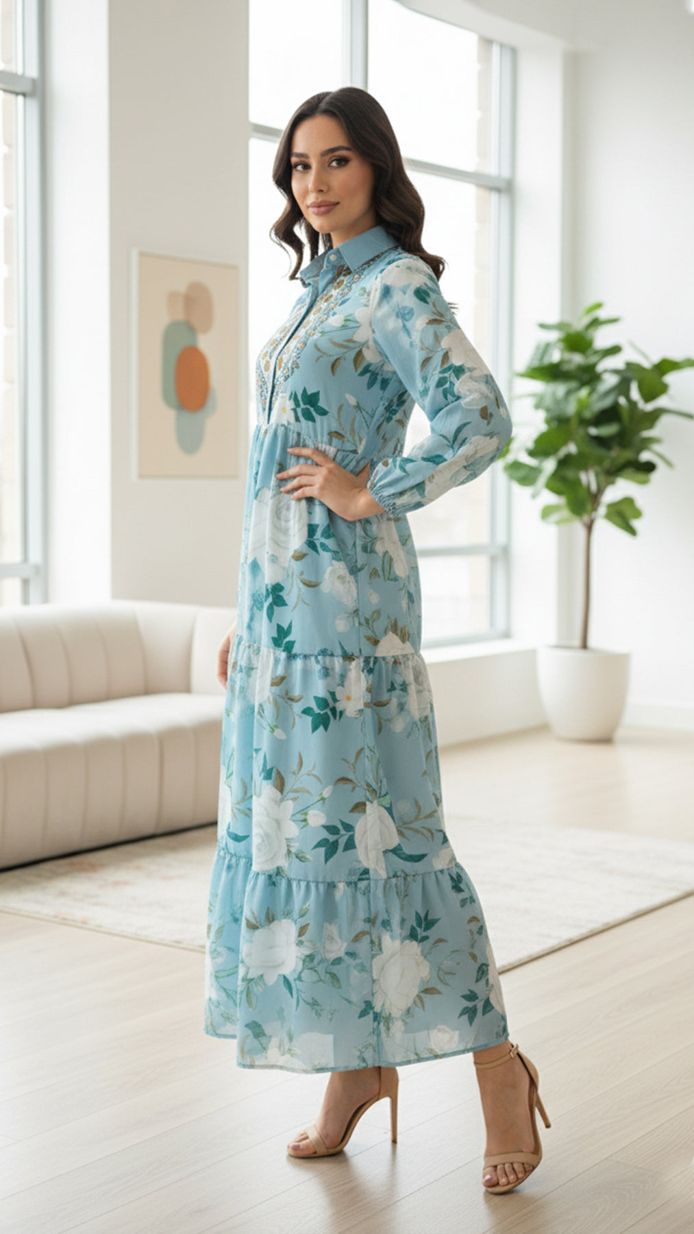 Aureline Dress radiates timeless charm with its elegant flow and refined detailing. Designed for comfort and sophistication, it transitions seamlessly from day to evening wear. A graceful long dress for women who appreciate effortless elegance and a touch of modern luxury in every occasion.