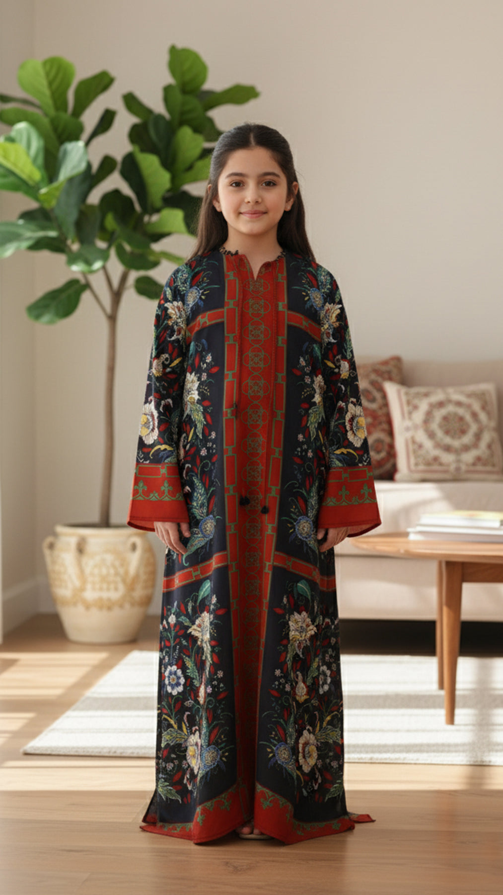 Chic, comfortable, and effortlessly graceful — Iridesca Rouge is a charming kaftan dress for young girls designed with playful elegance in mind. Crafted from premium breathable fabric suitable for all seasons, it drapes softly with a gentle sheen and easy movement, keeping her stylish and comfortable all day long.